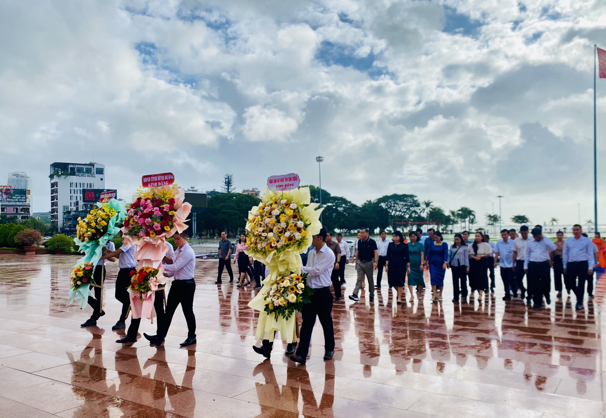 Các đại biểu thành kính dâng hoa tại Tượng đài Nguyễn Sinh Sắc - Nguyễn Tất Thành